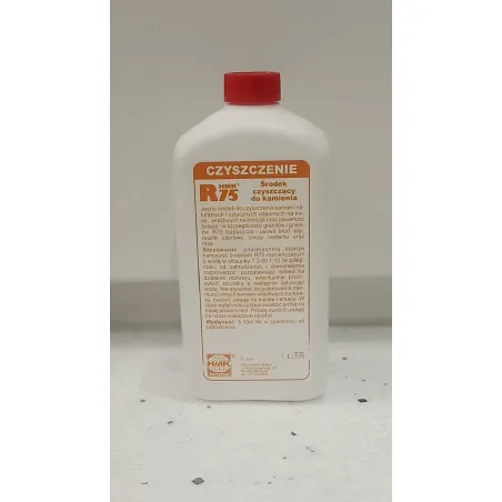 R75 to środek do czyszczenia kamieni naturalnych i sztucznych odpornych na kwas, wrażliwych na korozje oraz zawartość żelaza - w szczególności granitów i gnejsów. Rozpuszcza i usuwa brud, algi, resztki zaprawy, smugi cementu oraz rdzę.
